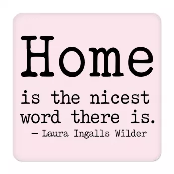 Home Is The Nicest Word There Is Square Coaster 4-Piece Set – Typography Print Coasters for Drinks – Minimalist Design Coffee Tea Mug Coasters