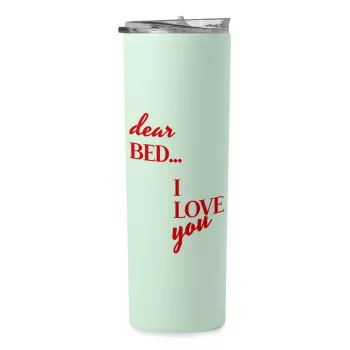 Dear Bed I Love You 20oz Skinny Tumbler – Funny Travel Mug – Minimalist Art Stainless Steel Tumbler