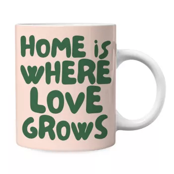 Home Is Where Love Grows 11oz Mug – Art Quote Ceramic Mug – Home Welcome Coffee and Tea Cup